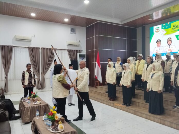 Pematangsiantar-Intainew | Wali Kota Pematangsiantar Wisli Silalahi diwakili Kadisos, Agustina Bulan Lasmana Sihombing mengukuhkan IPSM-PSM masa bhakti 2025-2030 di Gedung Serbaguna, Sabtu (22/11).